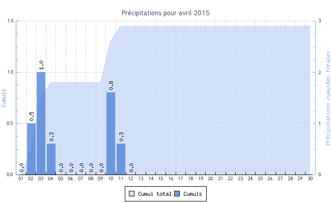 | Jour | Température | Vent | Pluie | |||